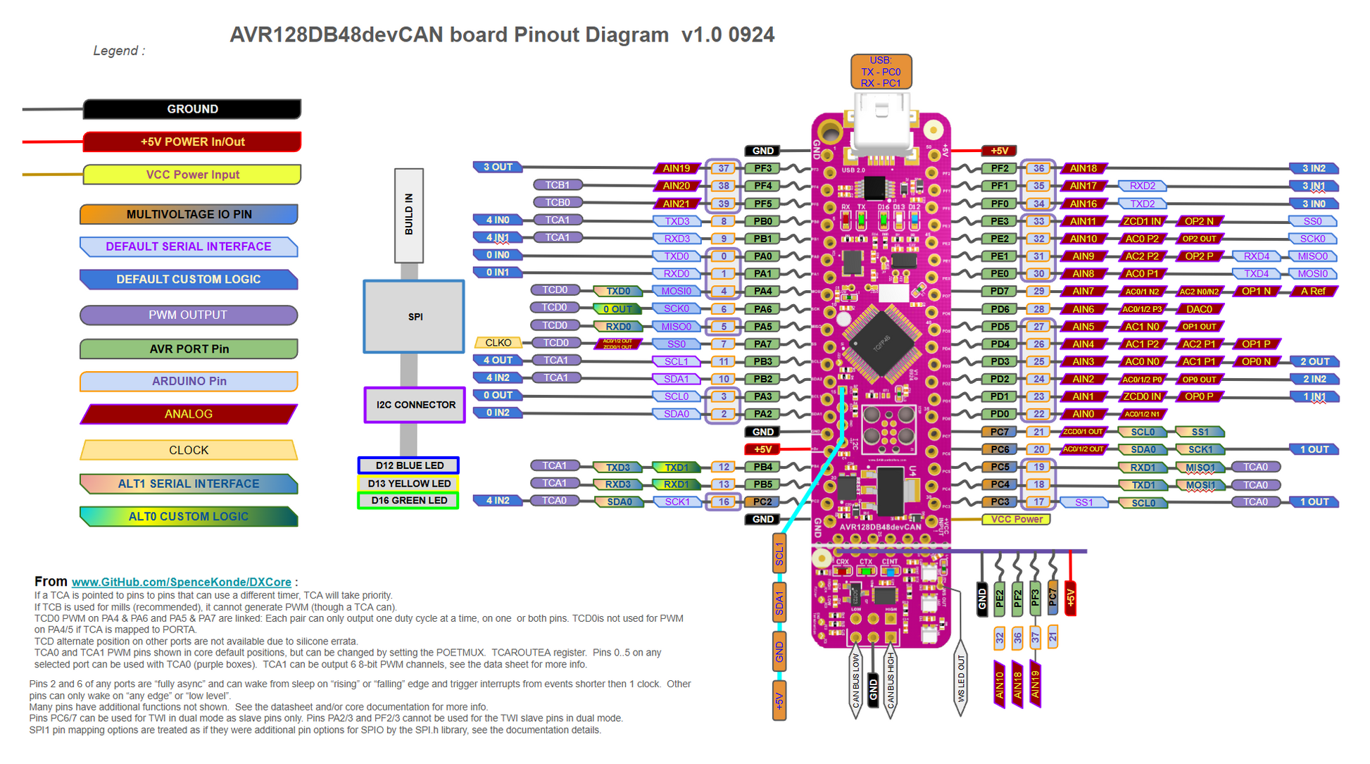 Accelerate your embedded development with our feature-rich AVR128DB48devCAN development board. Built around the powerful AVR128DB48 microcontroller and featuring integrated CAN bus connectivity, this board provides everything you need for professional embedded development and prototyping.